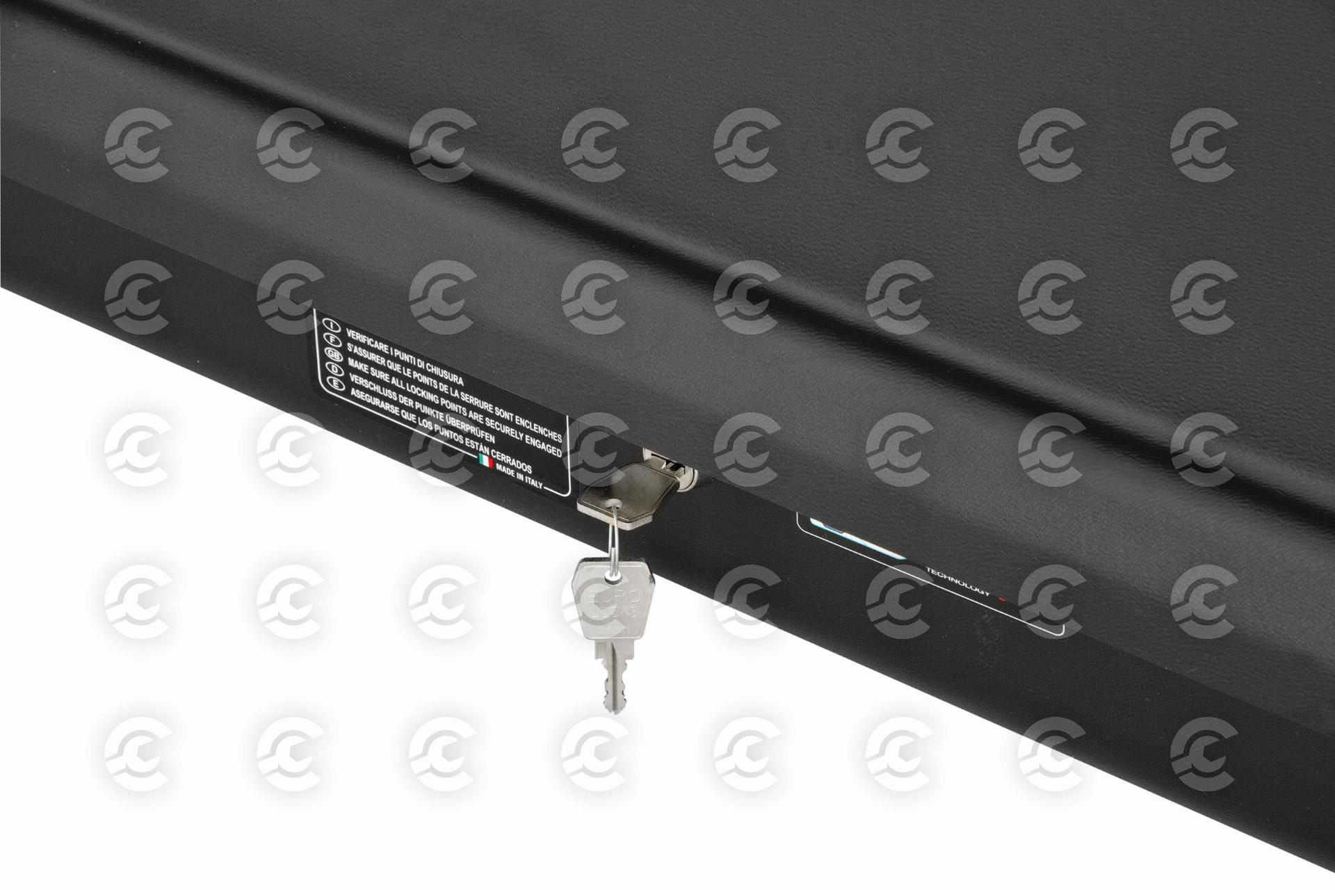 • In dotazione: coppia di cinghie per il bloccaggio del carico interno e libretto di istruzioni.