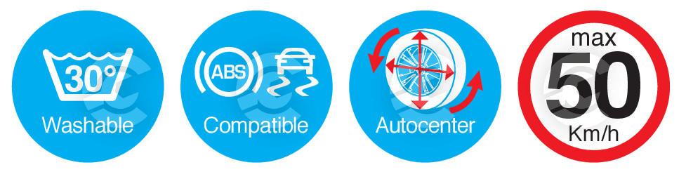 • Autocentranti, non danneggiano i cerchi.