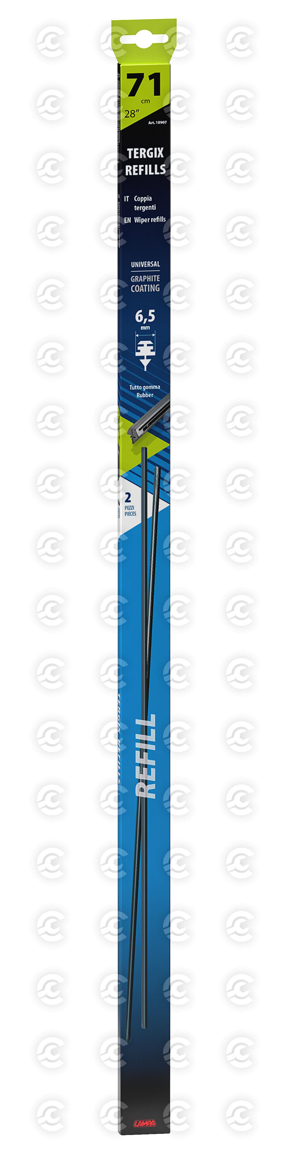 Coppia gommini di ricambio per tergicristallo universali. Gomma con laminatura in grafite