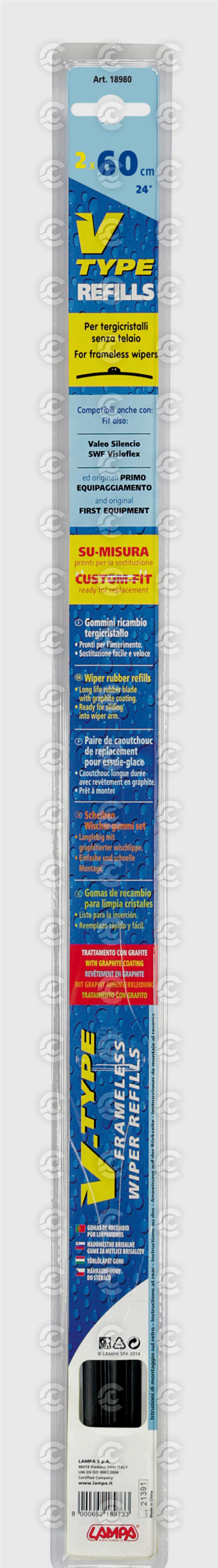 Coppia gommini di ricambio per tergicristallo senza telaio.