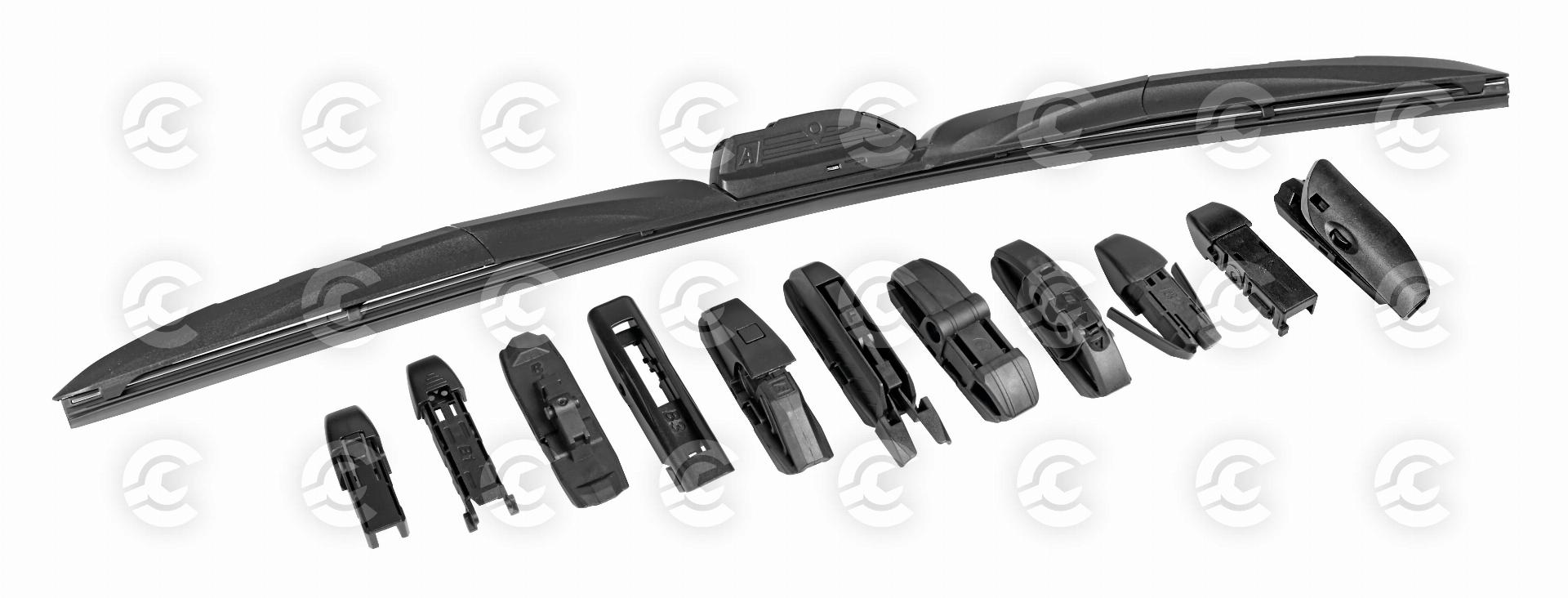 • 1 raccordo per il montaggio su tutte le vetture equipaggiate con tergicristalli tradizionali.