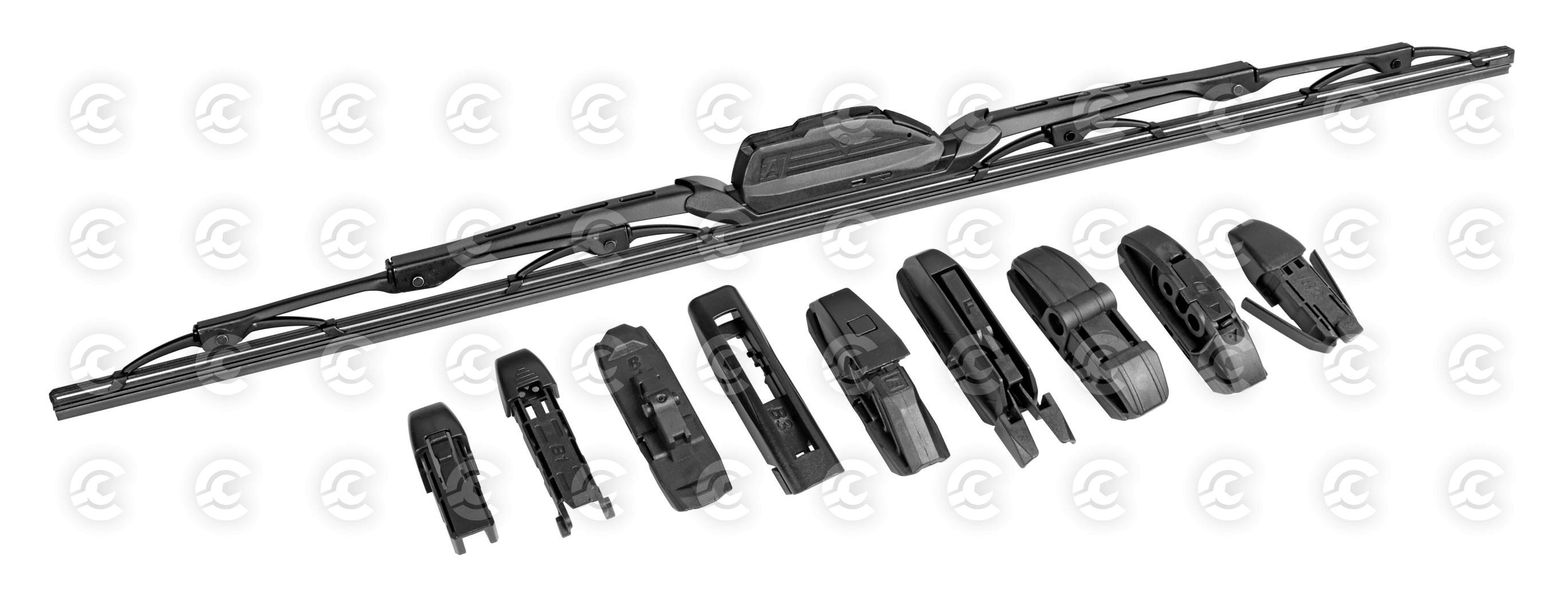 1 raccordo per il montaggio su tutte le vetture equipaggiate con tergicristalli tradizionali.