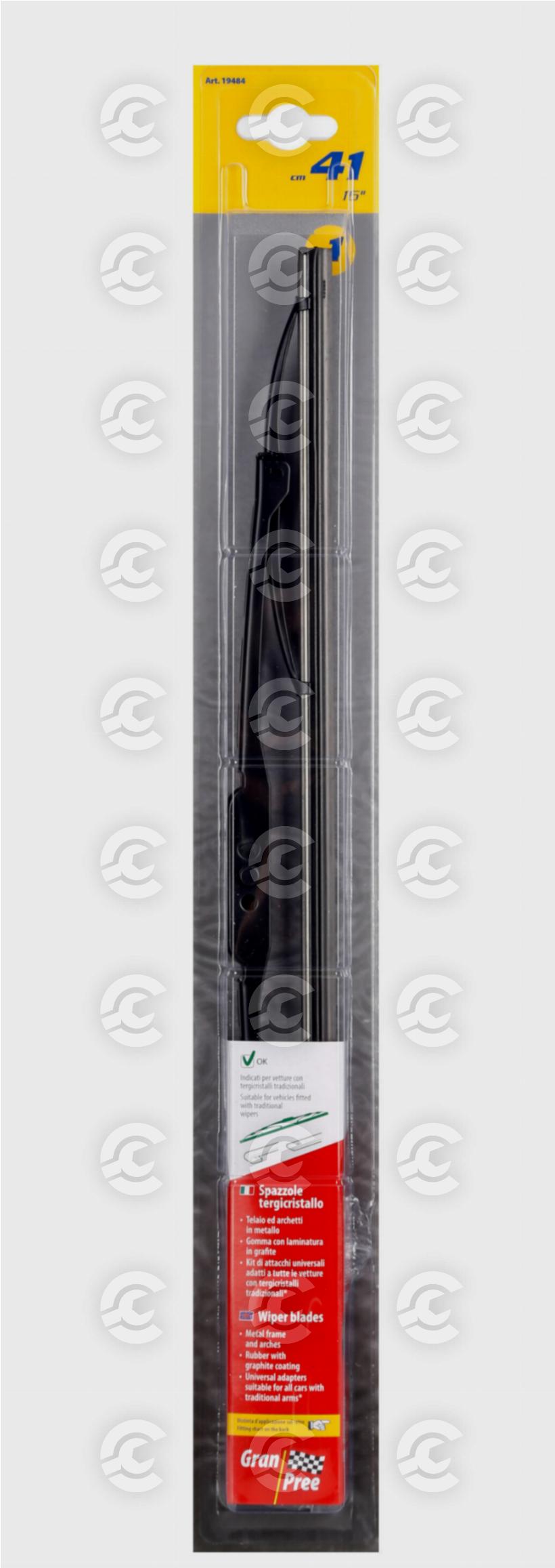 Telaio ed archetti in metallo. Gomma con laminatura in grafite. Kit di attacchi universali adatti a tutte le vetture con tergicristalli tradizionali