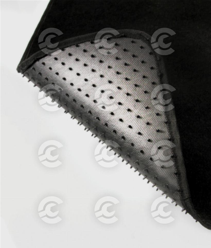 In moquette lavabile, antistatica ed inodore. Battitacco in PVC rinforzato. Retro in PVC impermeabile ed antiscivolo