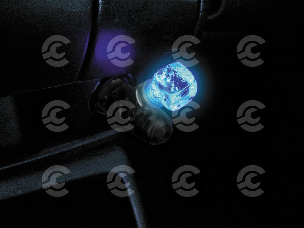 Dado luminoso in acrilico illuminato e colorato da un led interno. Si inserisce nella presa accendisigari, emette una tenue luce colorata che illumina il cruscotto e l’abitacolo.