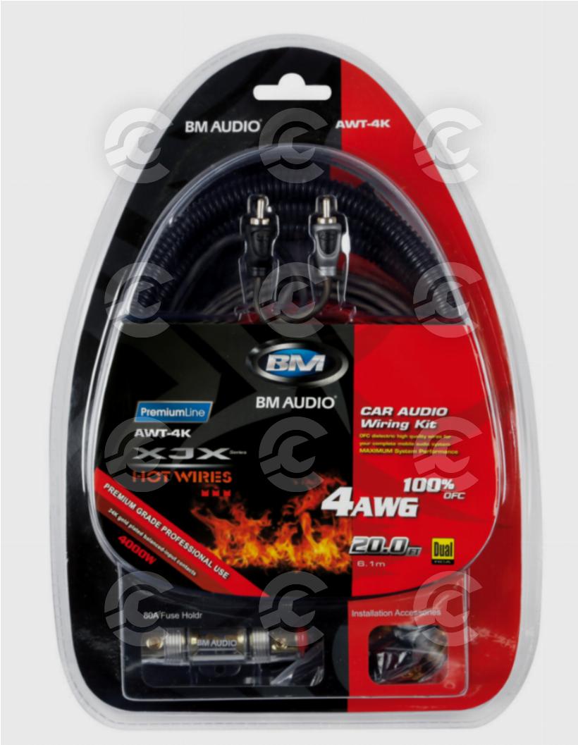 Fuse: 80A Power Cable: 5 m – Ø 20 mm2 Ground Cable: 0,9 m – Ø 20 mm2 Remote Cable: 6 m – Ø 1,5 mm2 Speaker Wire: 9 m – Ø 0,8 mm2 RCA Cable: 5 m – Ø 2,0 mm2 Audio Shield: Aluminium Plug Type: Male – Male Contact: 18K Gold Plated Plug Shield: Double Connection: 2-2 RCA Plug Kit: yes