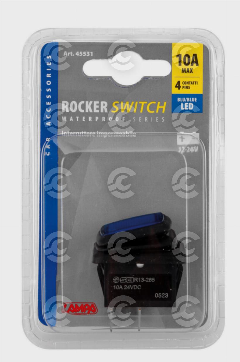 Interruttore impermeabile con spia a Led - 12/24V - Blu