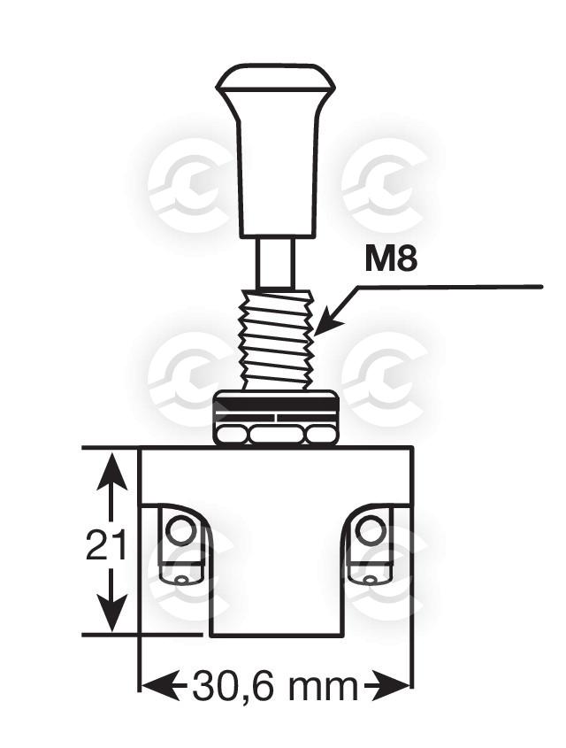 10A max. Funzione:Acceso/Spento. 2 contatti. Foro Ø 8,5 mm. Spessore max 10 mm.
