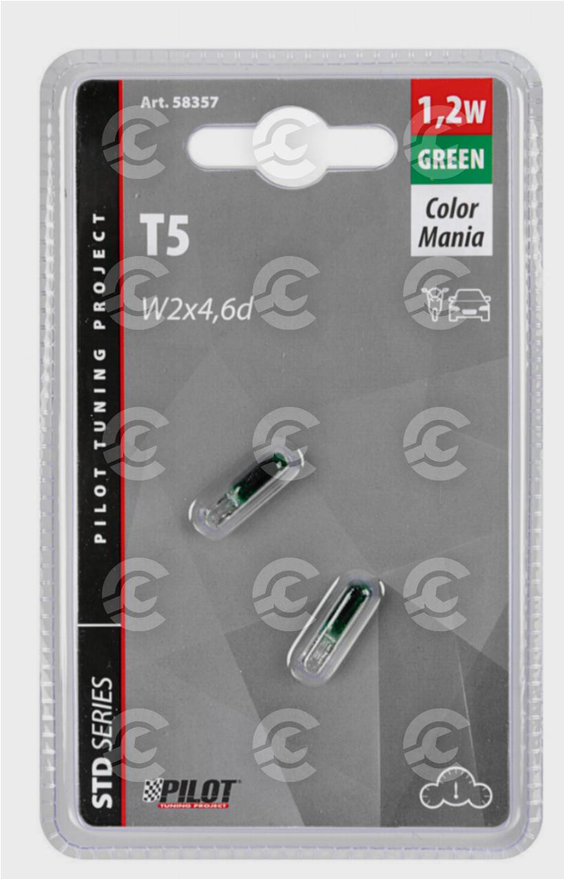 12V Lampada con zoccolo vetro - (T5) - 1,2W - W2x4,6d - 2 pz - D/Blister - Verde