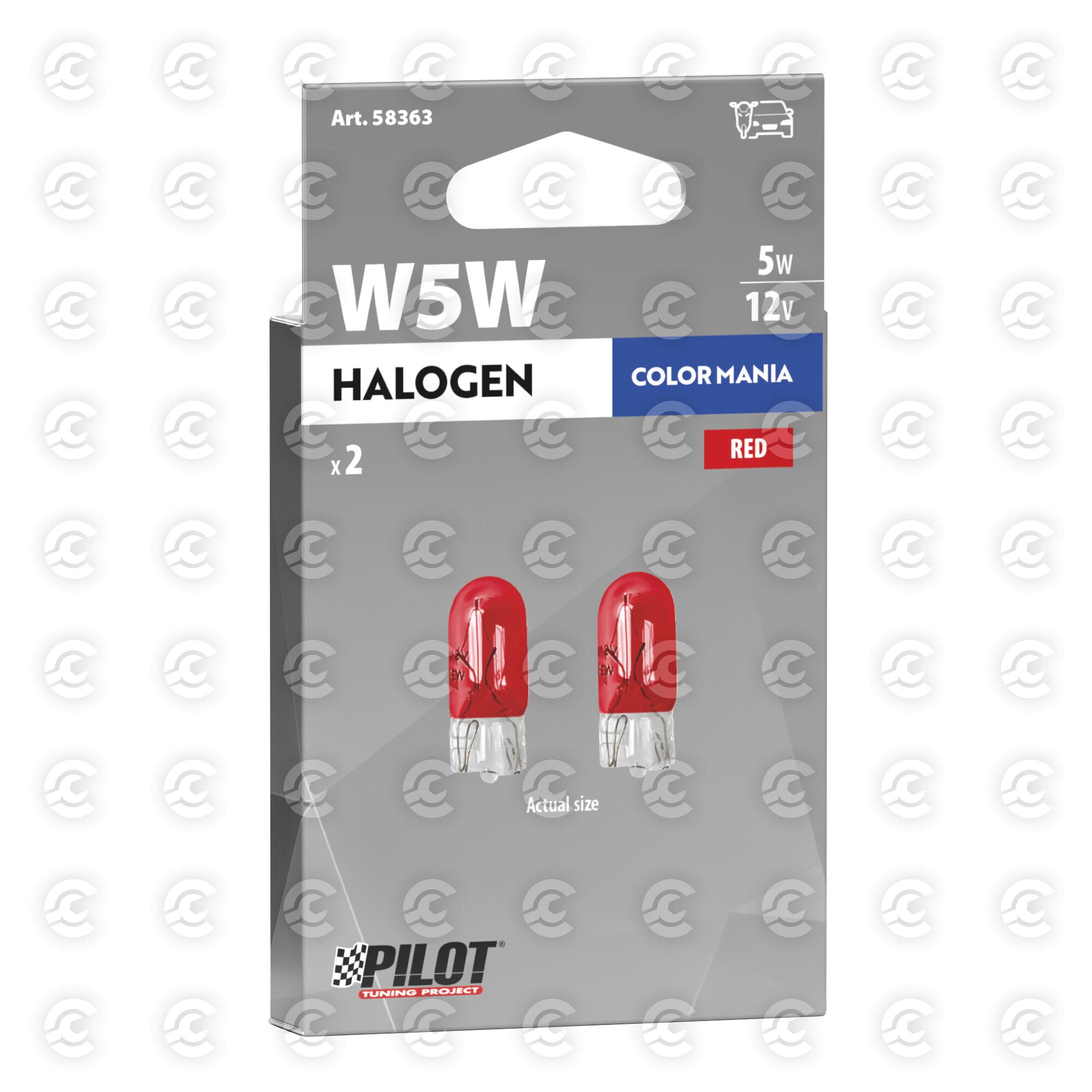 12V Lampada con zoccolo vetro - (W5W) - 5W - W2,1x9,5d - 2 pz  - D/Blister - Rosso