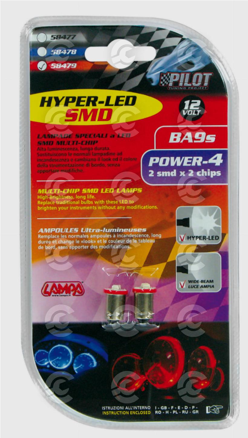 12V Hyper-Led 6 - 2 SMD x 3 chips - BA9s - 2 pz - D/Blister - Rosso