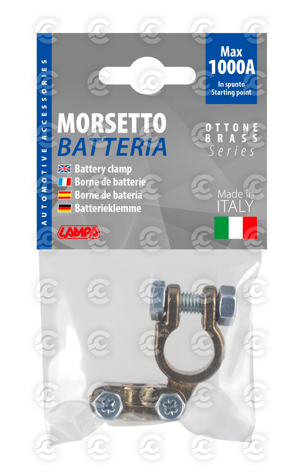 Morsetto batteria rinforzato; fissaggio cavo a piastrina - max cavo Ø 35 mm² - Polo positivo