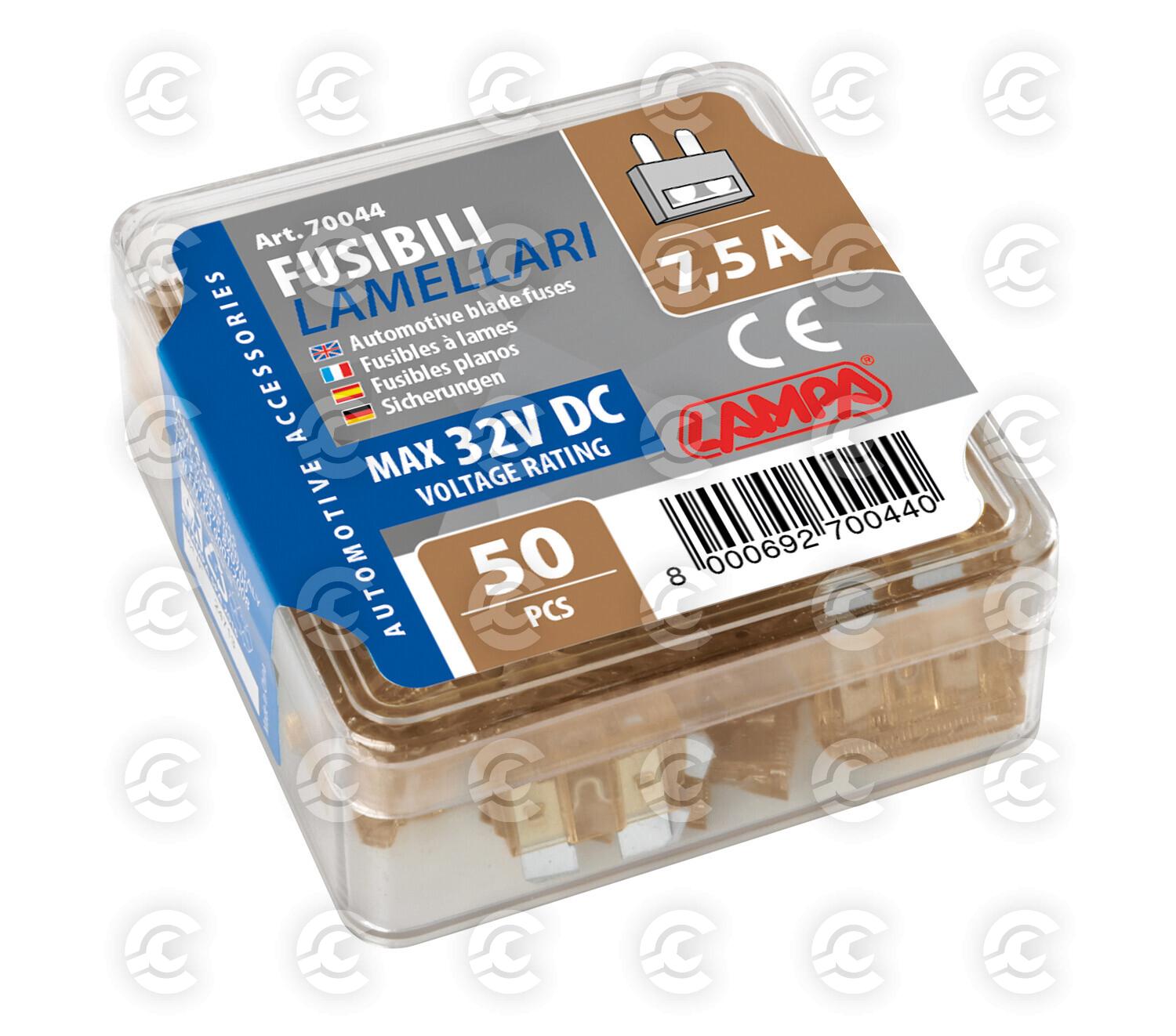 Confezione 50 fusibili lamellari, 12/32V - 7,5A